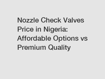Nozzle Check Valves Price in Nigeria: Affordable Options vs Premium Quality